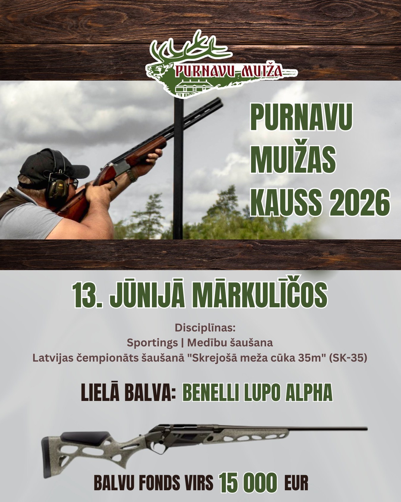 13. jūnijā Šaušanas Sporta Klubs Mārkulīči notiks Purnavu Muižas Kauss 2026 un Latvijas čempionāts SK-35 disciplīnā.